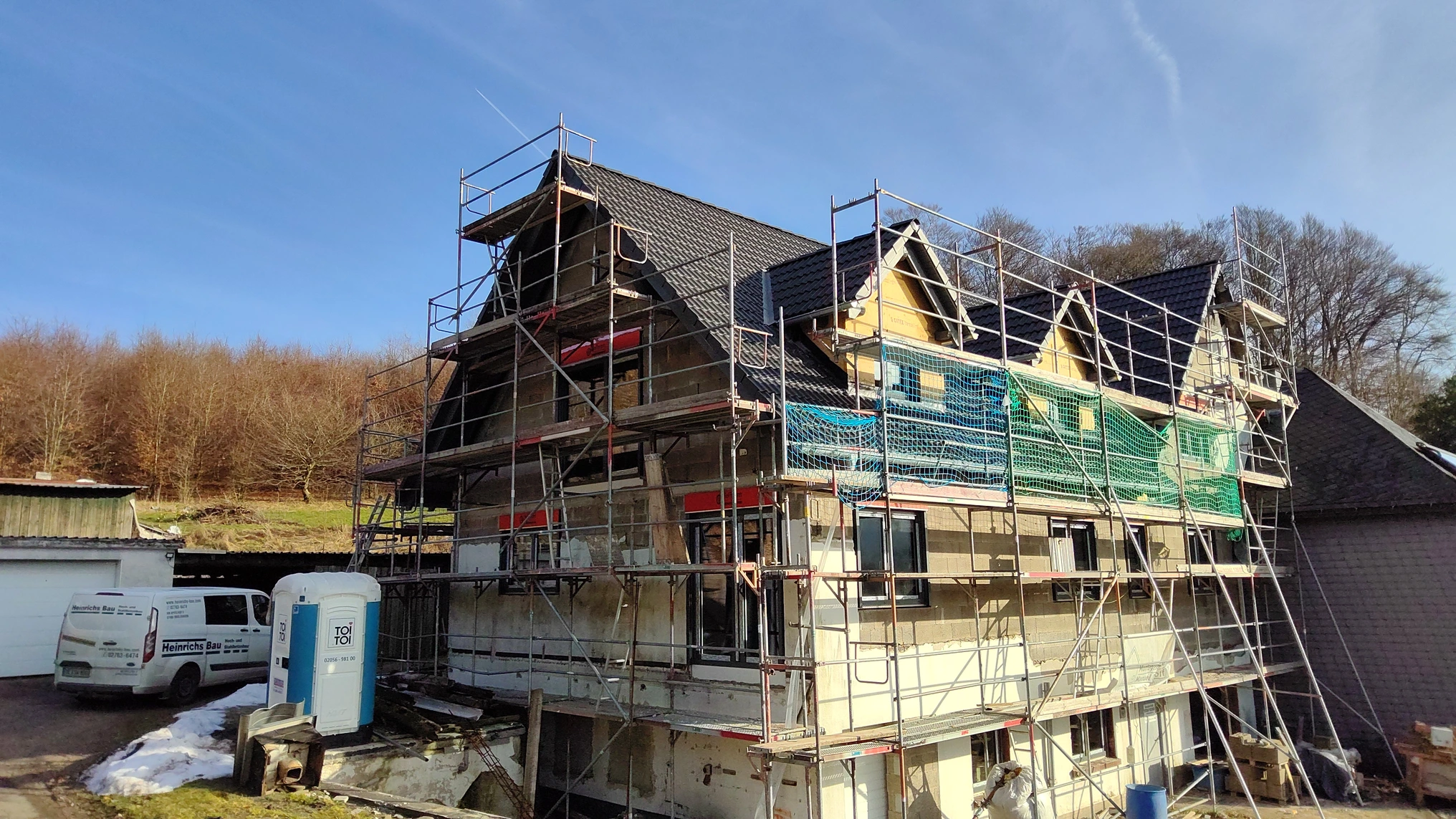 Aus einem in die Jahre gekommenen Wohnhaus wurde ein energetisch modernisiertes Zuhause. Dach, Keller und große Teile der Bausubstanz wurden erneuert, während andere Bereiche bewusst erhalten blieben. Von Rückbau bis Neubau kam hier alles zusammen. Ein Projekt, das zeigt, wie viel Potenzial in bestehender Bausubstanz steckt.